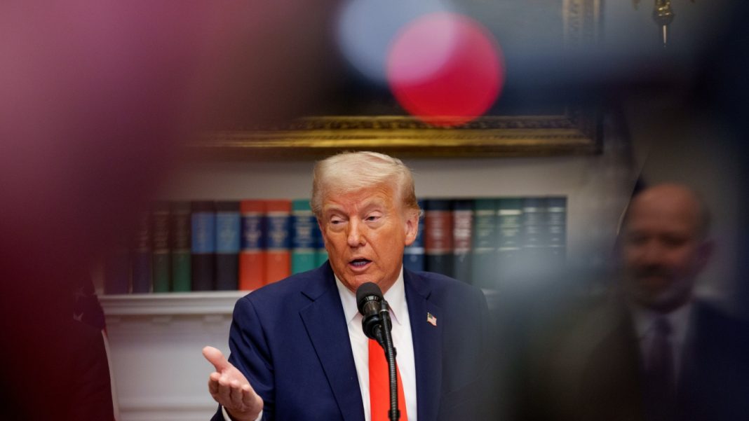 President Trump speaks in the Roosevelt Room of the White House on March 3, 2025 after announcing that Taiwan Semiconductor Manufacturing Company plans to invest $100 billion in new manufacturing facilities in the United States.
