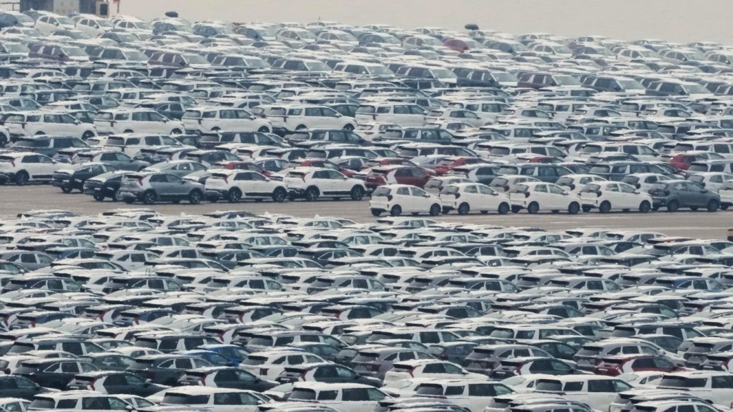 Vehicles for export are parked at a port in Pyeongtaek, South Korea on Wednesday.